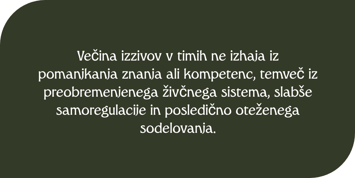 • podpira koregulacijo in občutek psihološke varnosti v timu,
